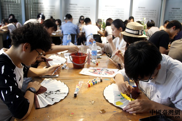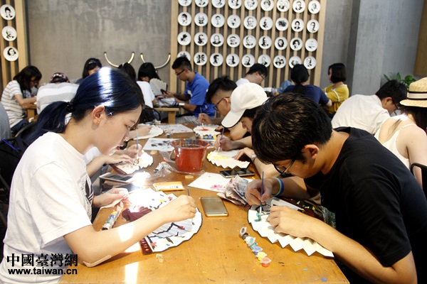 繪制屬于自己的折扇(中國臺灣網 楊永青 攝)