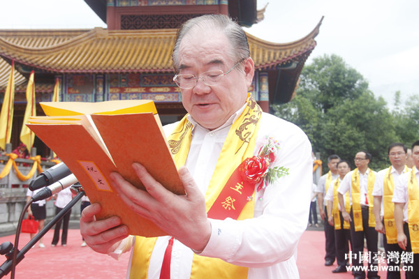 臺灣中華神農大帝協進會創會理事長李乾龍擔任主祭人并恭讀祭炎帝陵文。(中國臺灣網扶海濤 攝)