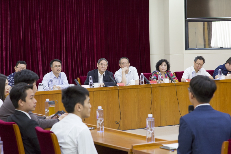 8月28日,中共中央臺辦、國務院臺辦主任張志軍與在大陸實習的臺灣高校暑期實習生座談交流,了解臺生在大陸實習就業情況,聽取意見建議。
