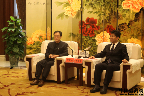 11月4日下午,江蘇省泰州市市委書(shū)記曲福田會(huì)見(jiàn)臺(tái)灣《聯(lián)合報(bào)》社長(zhǎng)項(xiàng)國(guó)寧一行。(中國(guó)臺(tái)灣網(wǎng) 王怡然 攝)