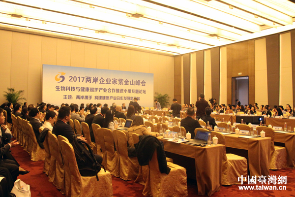 11月6至7日,2017兩岸企業(yè)家紫金山峰會 “生物科技與健康照護(hù)產(chǎn)業(yè)合作推進(jìn)小組專題論壇”在南京舉行。(中國臺灣網(wǎng) 王怡然 攝)