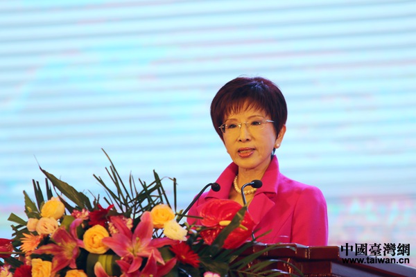中國國民黨前主席、中華青雁和平教育基金會董事長洪秀柱出席第十四屆“湖北·武漢臺灣周”開幕式并致辭。(中國臺灣網 李寧 攝)