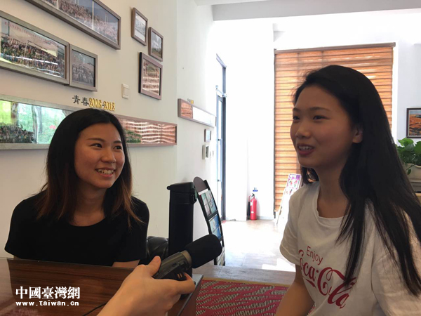 廈門大學俄語專業的吳冠璇(左)和鄒辰(右)向記者講述她們跨越海峽的友誼。