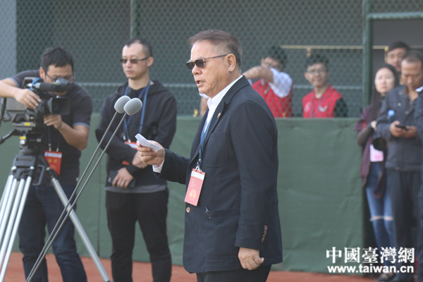 海峽兩岸棒球交流合作委員會名譽主席彭誠浩在開幕式上致辭。(中國臺灣網 陳文韜)