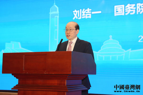劉結一在致辭中指出,舉世矚目的中共十九大,宣告中國特色社會主義進入新時代,確定了決勝全面建成小康社會、開啟全面建設社會主義現代化國家新征程的目標,規劃了實現中華民族偉大復興中國夢的宏偉藍圖。這是包括臺灣同胞在內全體中華兒女共同的輝煌前景。在全體中華兒女奮力實現中華民族偉大復興的進程中,我們愿意率先同臺灣同胞分享大陸發展的機遇。