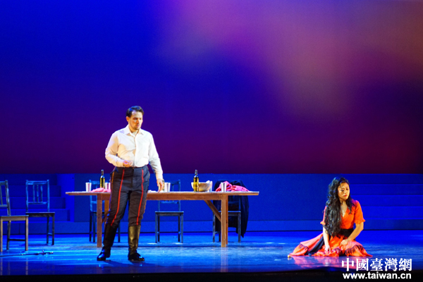 2018年1月7日晚,臺中市標(biāo)志性建筑臺中市歌劇院外人聲鼎沸,燈光璀璨。這座2017年被評為“臺灣建筑特別獎”的歌劇院迎來了一場特殊精彩的演出,由寧波交響樂團和臺灣創(chuàng)世歌劇團聯(lián)合制作,中央音樂學(xué)院院長俞峰擔(dān)任藝術(shù)指導(dǎo),中央音樂學(xué)院指揮系教授陳琳執(zhí)棒,中國音樂學(xué)院附中青年教師陳冠馥和臺灣著名歌唱家翁若佩領(lǐng)銜主演的全本法語歌劇《卡門》在這里隆重上演。(中國臺灣網(wǎng)發(fā) 寧波交響樂團供圖)