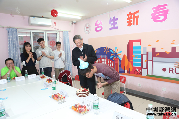 張志軍和同學(xué)們一起為1月份過生日的臺(tái)生簡(jiǎn)廷軒慶祝生日。