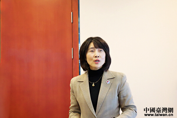 鄭州市臺(tái)協(xié)常務(wù)副會(huì)長詹麗珠接受記者采訪。(中國臺(tái)灣網(wǎng) 張亞靜 攝)
