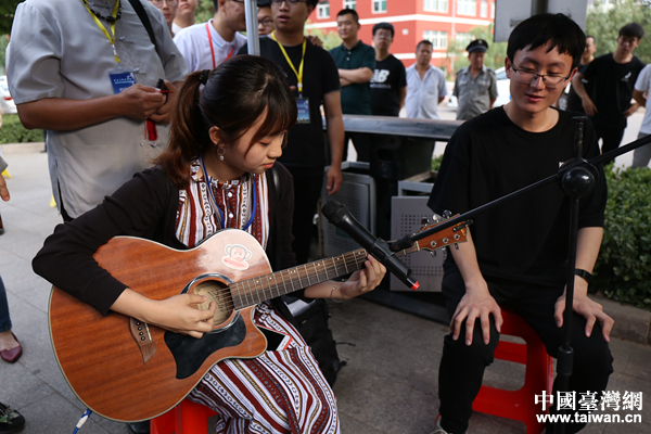 臺灣青年與校園樂團進行才藝互動。(中國臺灣網 袁楚 攝)