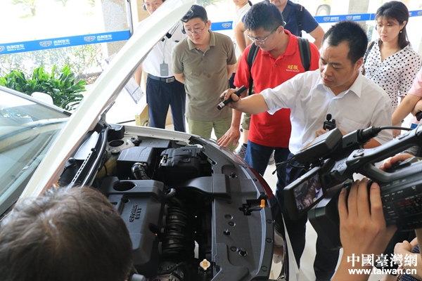 兩岸媒體記者聽工作人員介紹吉利汽車。(中國臺灣網(wǎng) 李奕均 攝)