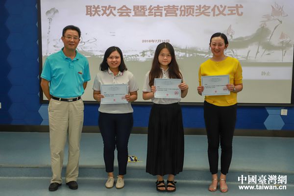 重慶師范大學副校長陳志軍教授為營員頒發了結業證書。重慶市臺辦副主任劉建南表示,希望渝臺兩地青少年珍惜這一段美好回憶和珍貴情緣,在今后人生道路上繼續加強聯系,成為共同打拼、攜手并進的好朋友、好伙伴,成為推動兩岸關系和平發展的生力軍。