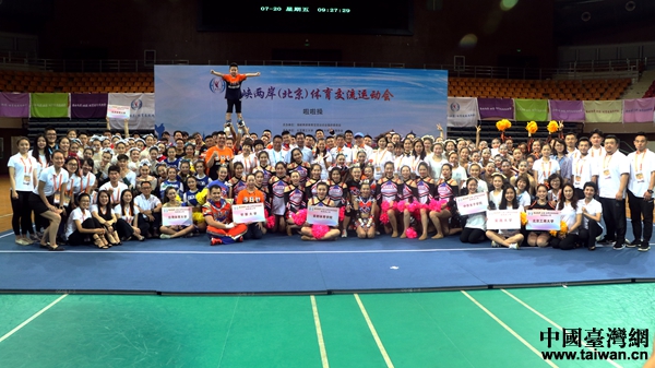 中國臺灣網7月20日北京訊 (記者 尹賽楠)激情夏日,是燃燒的季節。7月20日上午,海峽兩岸(北京)體育交流運動會啦啦操比賽在北京理工大學拉開帷幕。來自北京體育大學、北京工商大學、首都體育學院、中華女子學院、臺灣體育大學、世新大學、實踐大學在內的7支兩岸啦啦操代表隊共聚于此,同場競技,譜寫出一曲力量與美相結合的體育盛會。