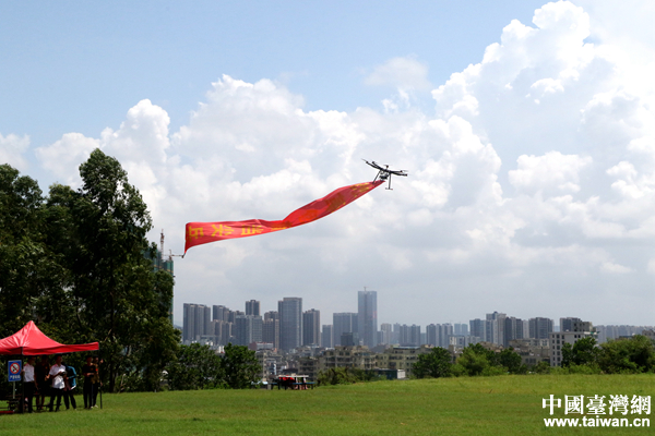 無人機表演吊掛條幅。(中國臺灣網(wǎng) 尹賽楠 攝)