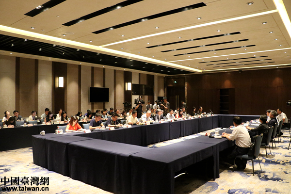 海南省省長沈曉明會見“海峽兩岸記者特區行”聯合采訪團一行。(中國臺灣網 尹賽楠 攝)
