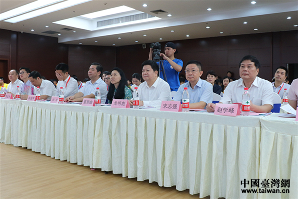 國務院臺灣事務辦公室副主任龍明彪、國務院臺灣事務辦公室交流局副局長董碧幽、福建省臺辦副主任宋志強、福州市副市長杭東等領(lǐng)導出席論壇。(中國臺灣網(wǎng) 郜利敏 攝)