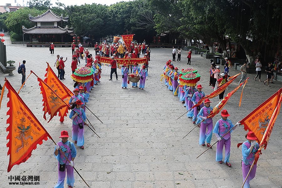 長島顯應宮媽祖金身在湄洲島進行踩街儀式。(中國臺灣網 何建峰 攝)