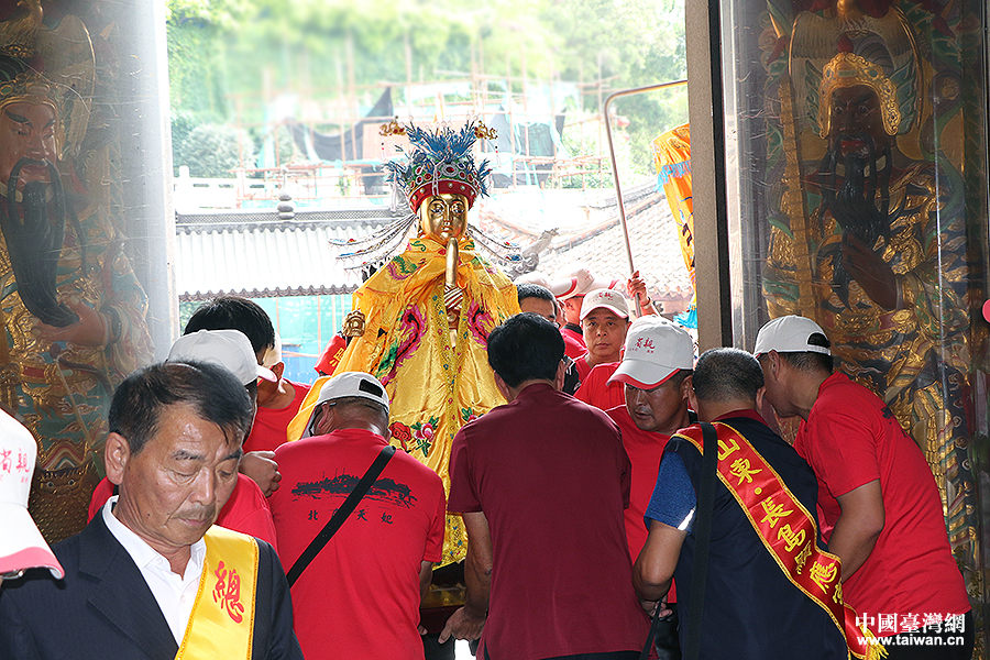 長島顯應宮媽祖金身護送團將媽祖金身護送進湄洲媽祖祖廟天后宮寢殿。(中國臺灣網 何建峰 攝)
