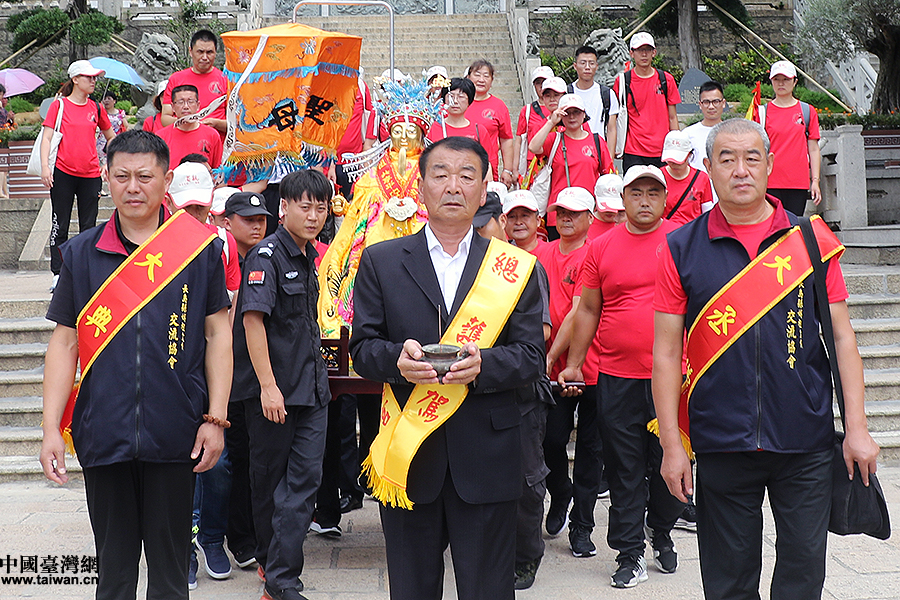 中國臺灣網9月12日臺北訊 (記者 何建峰)山東長島顯應宮千年媽祖金身日前結束了在媽祖故鄉——福建湄洲的省親活動,12日乘坐輪渡抵達臺北,開啟了為期13天的赴臺結緣會親活動。