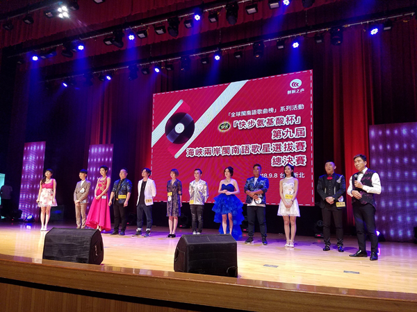 日前,海峽兩岸文化交流又一盛事——“快步氨基酸杯”第九屆海峽兩岸閩南語歌星選拔賽總決賽在臺灣新北市三重區綜合體育館演藝廳圓滿落幕。來自泉州的王耀華獲得本屆比賽總冠軍,來自臺灣的洪國轟和來自泉州的黃龍俊分獲比賽亞軍、季軍。