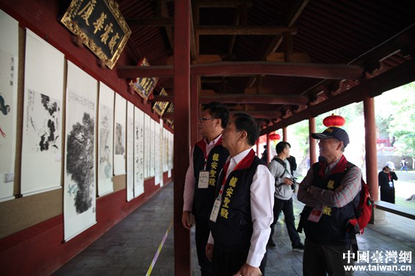 來自臺灣的伙伴們正在進行書畫展參觀(中國臺灣網 許晗 攝)