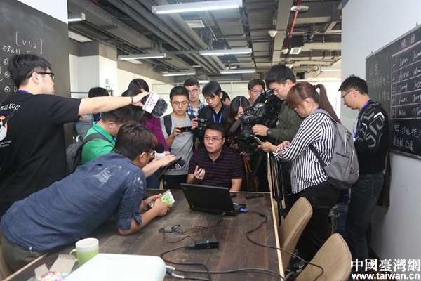 兩岸新媒體人在兩岸青年創業園對創業者進行采訪。(中國臺灣網 陳佳慧 攝)