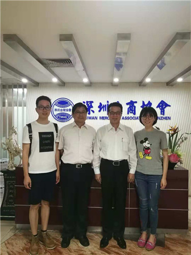 記者采訪深圳臺(tái)商協(xié)會(huì)會(huì)長(zhǎng)陳忠和(右二)、秘書長(zhǎng)盧政群(左二)
