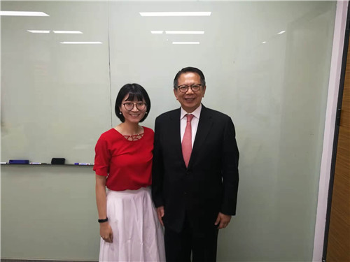 記者與接受采訪的北京臺(tái)協(xié)會(huì)長(zhǎng)章啟正合影
