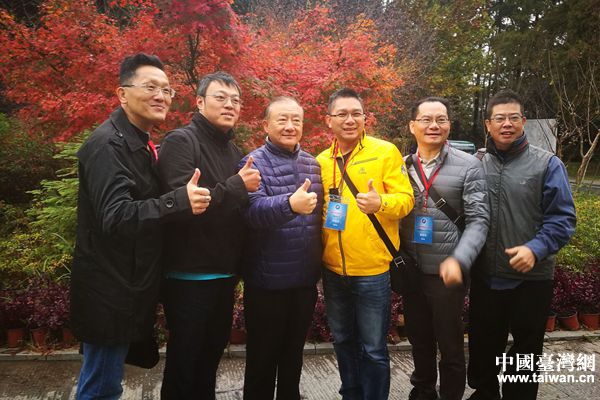 臺灣電電公會會策顧問尹啟銘與臺商合影留念。(中國臺灣網 王莉婷 攝)