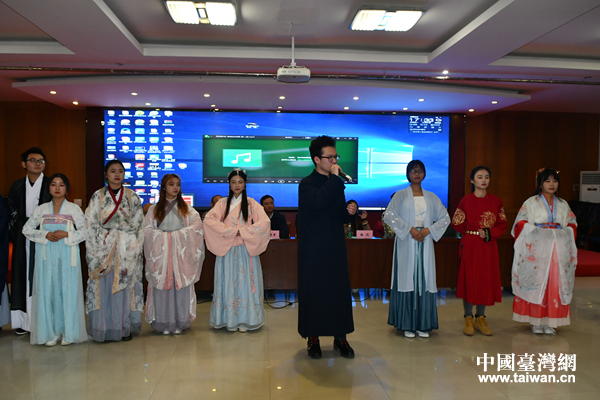 臺生黃泓瀚(右四)朗誦《清明》。(圖片來源:四川省臺辦)