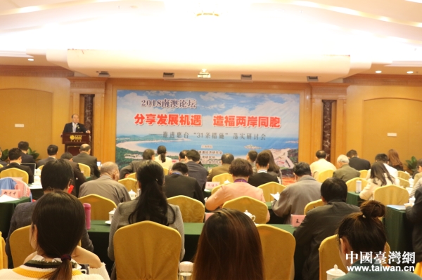 論壇現場,兩岸嘉賓圍繞“‘惠臺31項措施’意義重大影響深遠”、“‘九合一’選舉后深化兩岸經濟融合發(fā)展的路徑選擇”、“新形勢下兩岸經濟融合發(fā)展的推進策略探討”、“兩岸融合發(fā)展的意義、內涵與路徑”、“臺灣同胞與大陸同胞‘同等待遇’的法證基礎”等主題進行了深入的交流與探討。