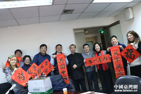 書法家向在京臺胞贈送春聯。(中國臺灣網 汪明珠 攝)