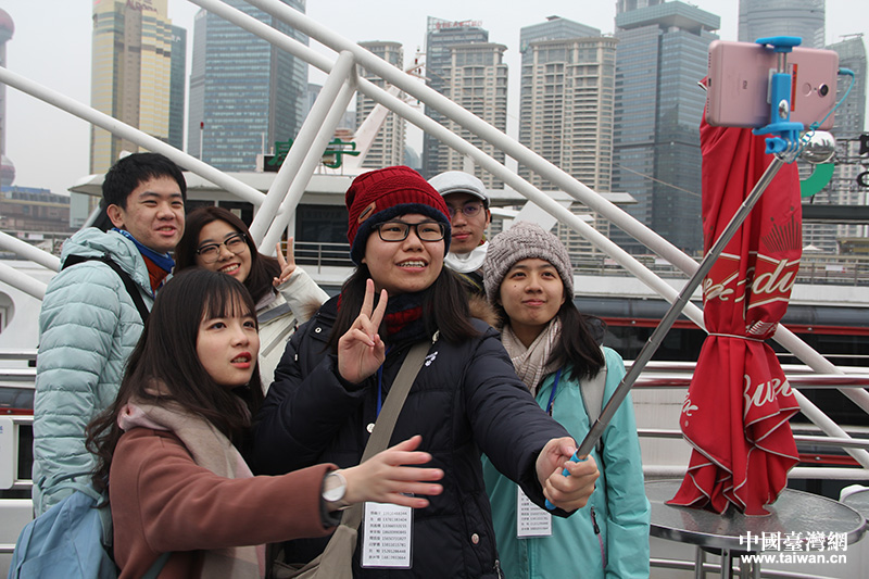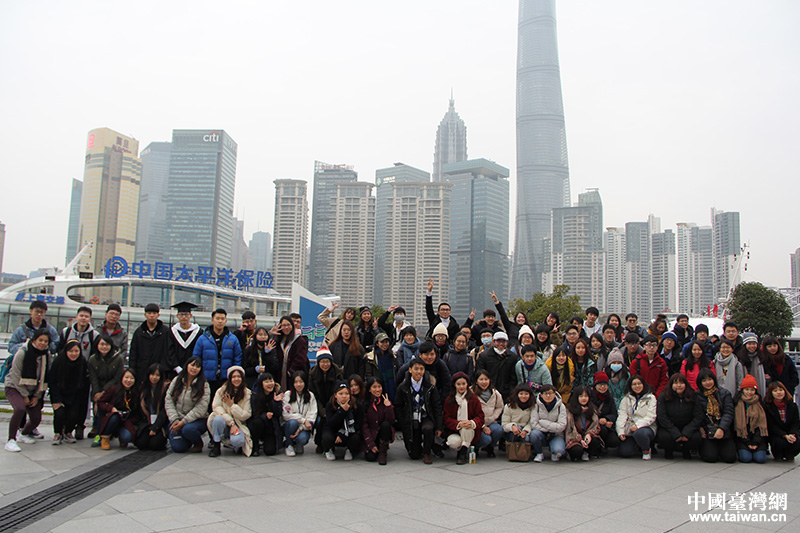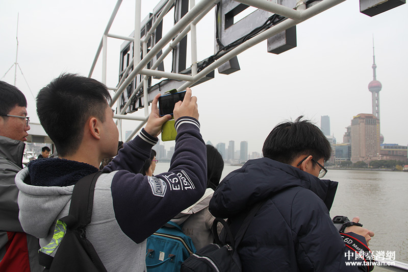兩岸青年在黃浦江畔合影留念。(中國臺灣網 王莉婷 攝)