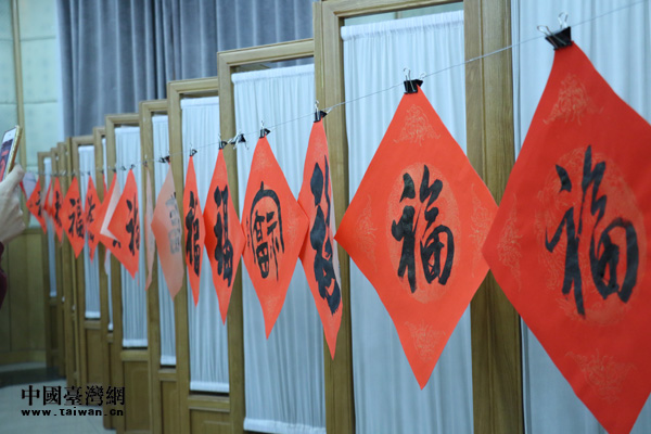 農歷豬年將至,活動現場一片祥和之氣,機關員工與書畫家們互動熱絡,互相祝福。書畫家們揮毫舞墨,真草隸篆,風格各異的“!弊周S然紙上!肮仓倌曛袊鴫簦c贊兩岸一家親!币桓备备桧瀮砂逗兔篮蒙畹膶β摚N含著海峽兩岸同胞祈盼祖國統一的美好愿望和新年美好祝福。