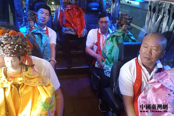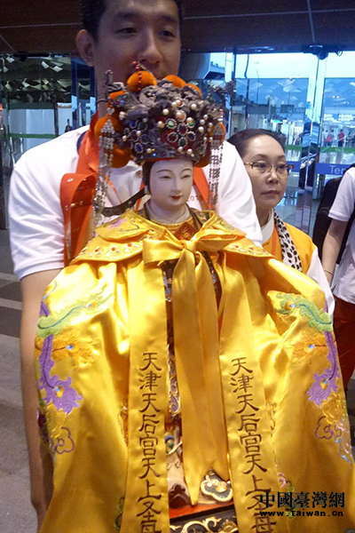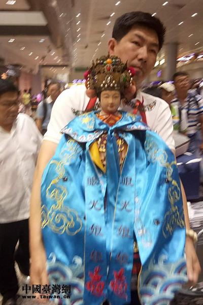 兩岸宮廟人士護送媽祖走出機場。(中國臺灣網 發)