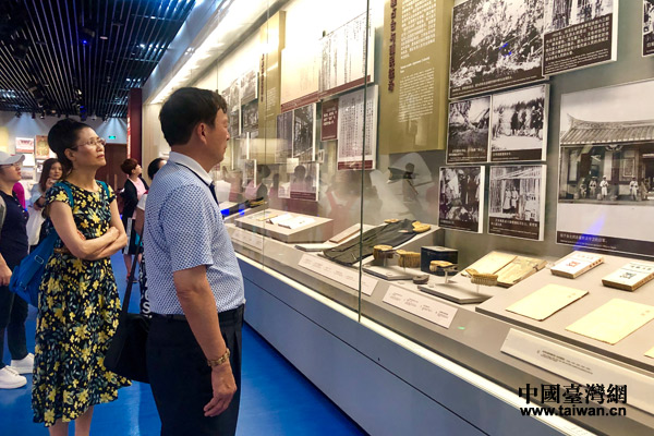 團員參觀抗戰史表情凝重。(中國臺灣網 楊旋 攝)