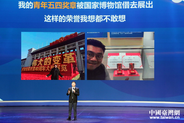 8月7日下午,2019海峽青年(福州)峰會在福州海峽文化藝術中心舉行。首批獲得“福建青年五四獎章”的臺青范姜鋒分享自己在大陸就業創業經歷。(中國臺灣網 王怡然 攝)