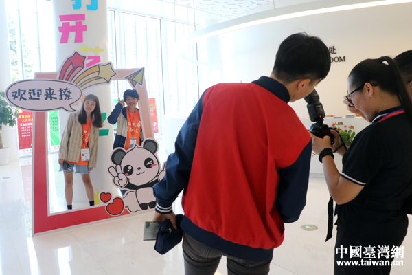 8月7日下午,2019海峽青年(福州)峰會(huì)在福州海峽文化藝術(shù)中心舉行。現(xiàn)場(chǎng)觀眾和融融品牌形象合影留念。(中國(guó)臺(tái)灣網(wǎng) 王怡然 攝)