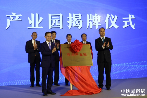 在兩岸企業(yè)家峰會大陸方面理事長郭金龍、臺灣方面理事長蕭萬長、大陸方面副理事長張平和臺灣方面副理事長邱正雄的共同見證下,京臺產(chǎn)業(yè)園正式揭牌。