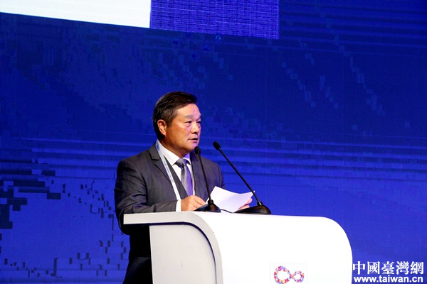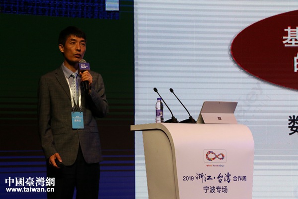 浙江中之杰智能系統有限公司創始人、總裁、寧波騰訊云產業基地董事長蘇玉學作主題演講。(中國臺灣網 李杰 攝)