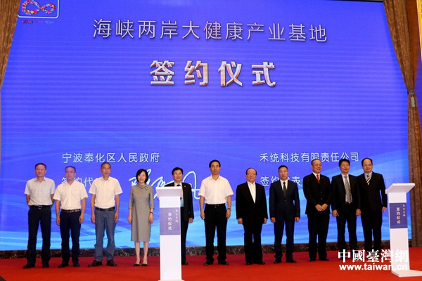 與會領(lǐng)導和嘉賓共同見證了“海峽兩岸大健康產(chǎn)業(yè)基地”新項目的簽約。(中國臺灣網(wǎng) 李杰 攝)