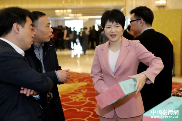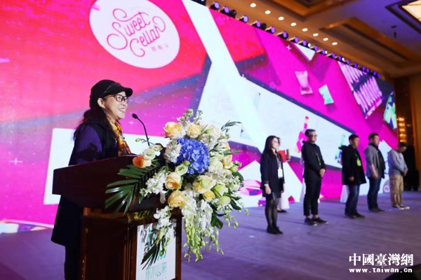 臺灣形象策略聯(lián)盟執(zhí)行主席林采霖發(fā)表對獲獎(jiǎng)作品的評價(jià)。她是2018中國改革開放40年設(shè)計(jì)人特殊功勛獎(jiǎng)獲得者。(中國臺灣網(wǎng)發(fā))