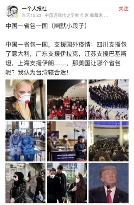 大概是受此啟發吧,對AIT的這份“聲明”,有大陸網民說出了“一省包一國,臺灣包美國”。但誰都看得出來,這是在調侃、嘲諷。其中原因,無需多說,大家都明白。真有不明白的,翻一翻新聞報道,看看疫情發生以來美國和臺灣民進黨當局都做了些什么,自然就明白了。