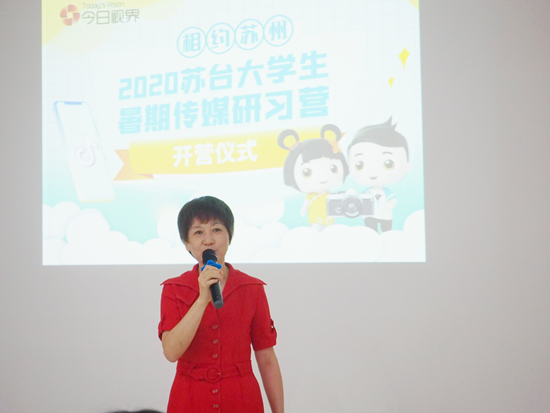 蘇州市臺辦副主任沈蓉致歡迎辭,對同學們的到來表示熱烈歡迎,并希望同學們在這次快樂的學習旅程中,掌握新知,增進友誼,強化安全防疫防暑意識、學習意識和創新意識,用心、用情、用鏡頭,去感知、發現、記錄美麗蘇州、美好蘇州。