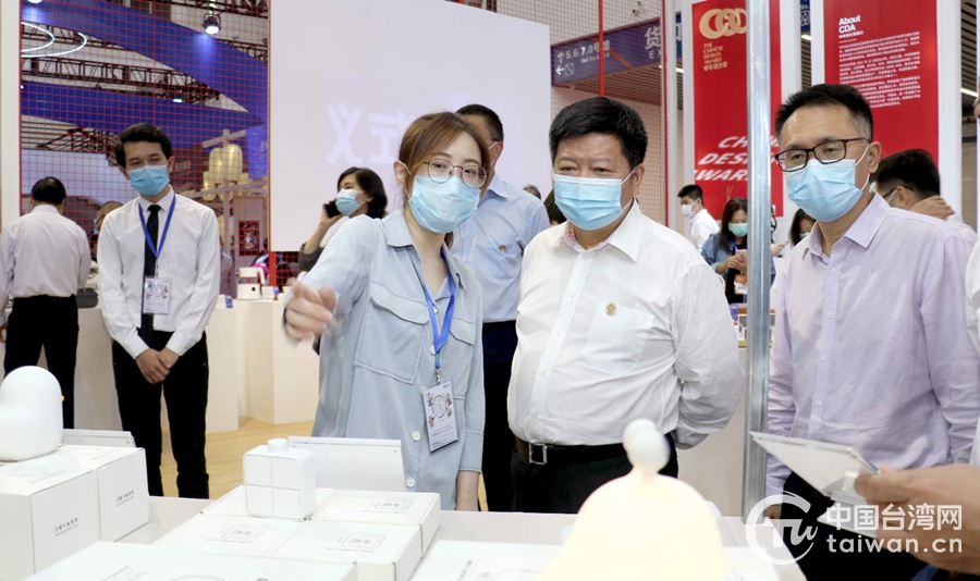 中共中央臺辦、國務院臺辦副主任龍明彪參觀中華設計獎優秀作品展出。(中國臺灣網 普燕 攝)