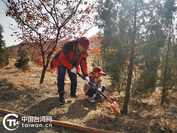 11月7日,北京市臺灣同胞聯(lián)誼會在房山區(qū)張坊鎮(zhèn)南白岱村開展“百個家庭百棵樹——在京臺胞、臺商、臺生公益植樹”活動,130余名臺胞和市臺聯(lián)機(jī)關(guān)干部參加。(中國臺灣網(wǎng) 王思羽 攝)