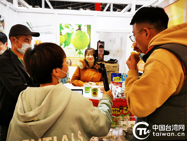 線上直播環節安排主播現場逛展、試吃,幫臺農直播帶貨。(中國臺灣網 王思羽 攝)