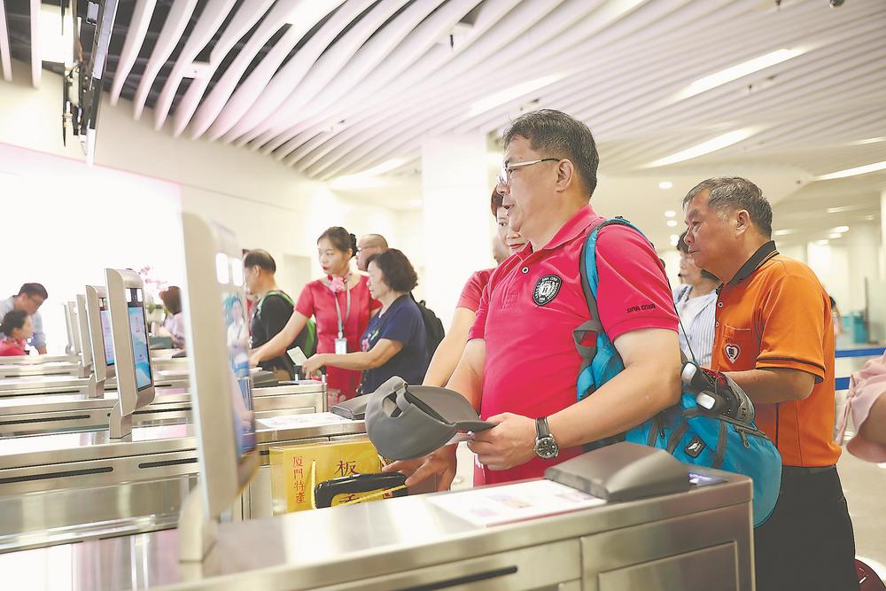 臺(tái)胞在廈門五通客運(yùn)碼頭準(zhǔn)備檢票登船。 (攝于2019年6月3日)