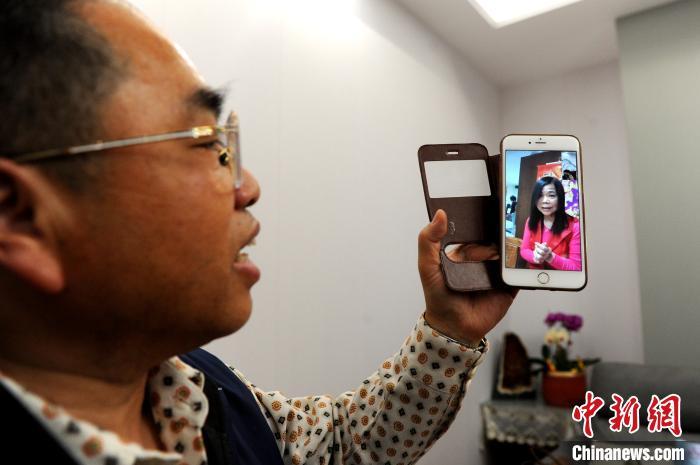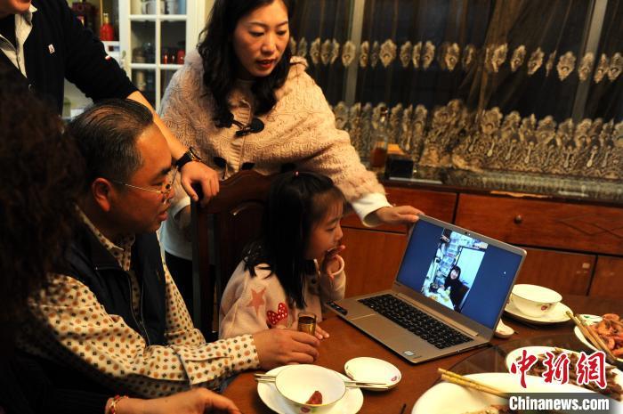臺商曾文子一家人與臺灣親朋好友視頻連線相互傳遞新年祝福,一起“線上圍爐”。 張金川 攝