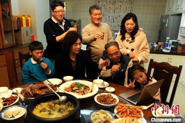 11日,大年三十晚上6點整,臺商曾文子一家人開啟他們在大陸“別樣”的團圓飯,并與臺灣親朋好友視頻連線相互傳遞新年祝福,一起“線上圍爐”。