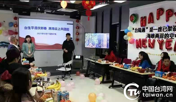 中國臺灣網2月13日平潭訊 2月11日,農歷大年三十當晚,一場名為“臺生平潭慶新春 跨海云上共團圓”的聯歡活動在平潭臺創園“臺陸通”公司舉行。13位來自大陸雙一流大學的臺灣青年學子及“臺陸通”臺籍員工在公司工作人員陪同下,一同過了一個充滿歡歌笑語的溫馨年夜。